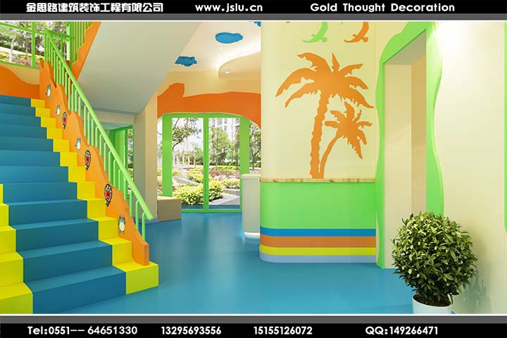 合肥教育機(jī)構(gòu)的設(shè)計(jì)裝修色彩很重要,藍(lán)色是大海的主題色,它象征著深沉,成熟,博大寬容的境界??雌饋硖貏e的素雅又不活潑的感覺,整體很舒服。